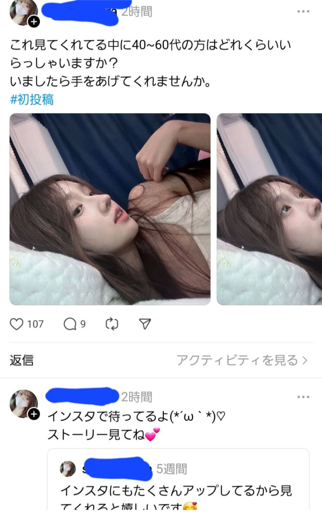 これはインスタやスレッズに限った話ではなく「X(ツイッター」や「Tik Tok」などのSNSにいるエロそうな投稿をしているアカウントは全てネカマアカウントと思っていてください。