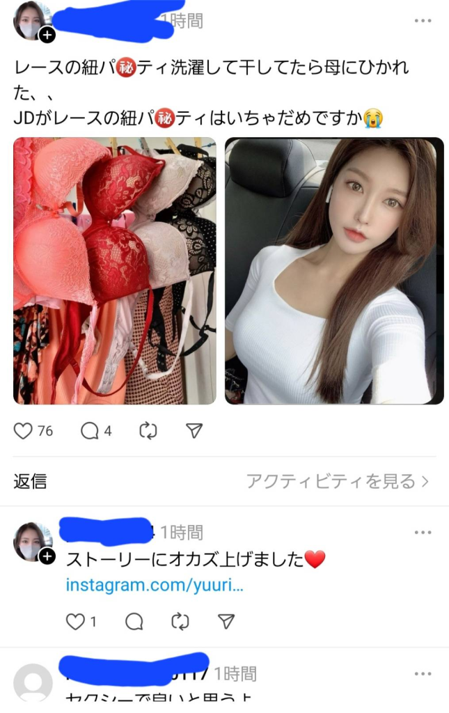 - ❸投稿のリプにインスタやアフィリンクを貼ってある